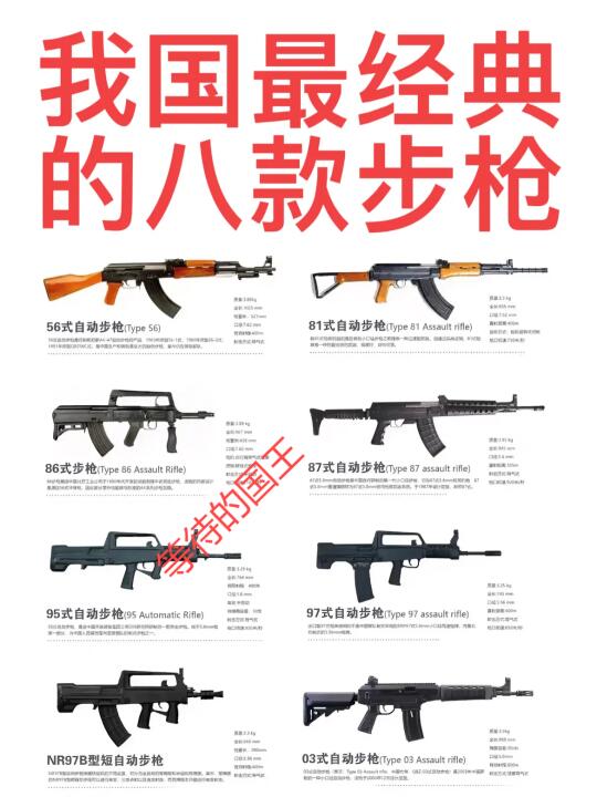 而后是97式、03式,如图片所展示,八款步枪,可谓是款款经典。大家用过几款呢?说实话,如果真的遭遇战争,还真要准备几款老式步枪,因为对于老兵来说,56式和81式用起来更顺手,5700万退伍老兵随时听候祖国的召唤,退伍时所说的“若有战 召必回”绝对不是一句空话。因为我们时刻准备着……