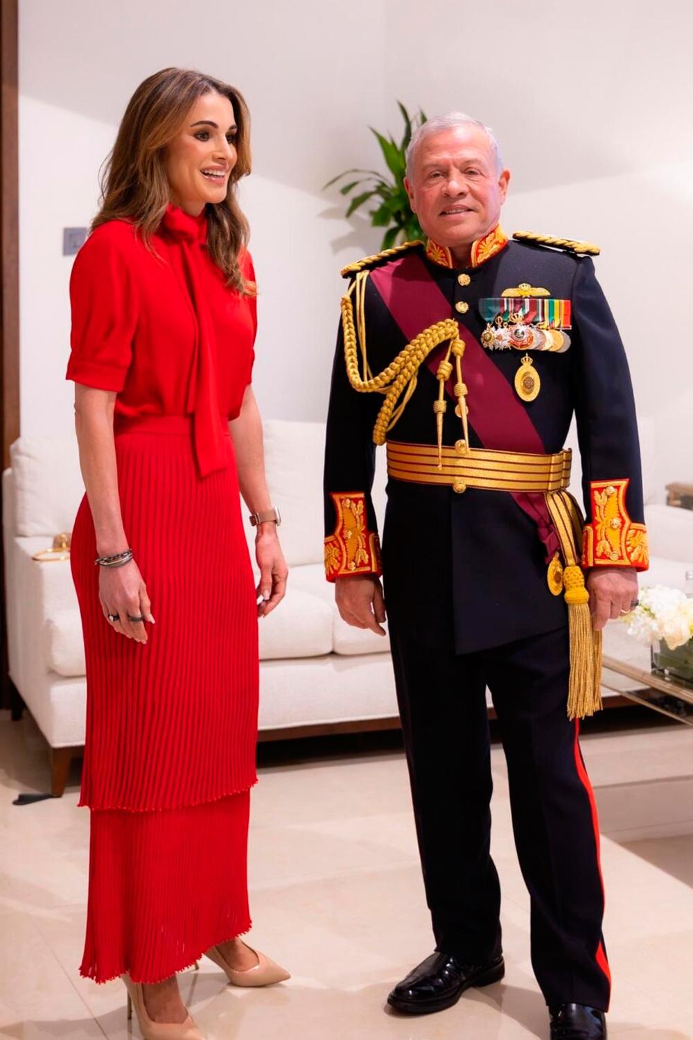 54岁约旦王后刚当奶奶就上热搜:踩10cm高跟俯视国王,把30岁儿媳比到尴尬 最近,约旦王室又上热搜了! 不是因为什么政治风云,而是54岁的拉尼娅王后在议会开幕式上的惊艳亮相。当全场目光都被她吸引时,站在一旁的30岁儿媳却黯然失色。 要知道,拉尼娅可是刚升级当奶奶没多久!这位新晋王室奶奶不仅没有被年龄打败,反而越活越年轻,让人不得不感叹:这才是真正的“逆生长”啊! 穿着Valentino定制丝质衬衫配Altuzarra百褶裙的她,踩着10公分的细高跟,优雅地走在红毯上。这哪像个当奶奶的?简直比超模走秀还要气场全开! 更有意思的是,她完全不在意什么“夫妻身高相配”的传统礼节。踩着恨天高的她,理直气壮地俯视着身边的国王,这份底气和霸气,让人不禁感叹:这才是真正的“王后范儿”! 说起来,拉尼娅的“逆生长”秘诀确实令人好奇。看看站在她身边的丈夫,国王阿卜杜拉二世一头白发,活脱脱像个“老爷爷”,谁能想到他其实只比拉尼娅大8岁半? 更绝的是,她连亲儿子站在旁边都能“压过一头”。这位王储看起来倒像是王后的哥哥,而不是儿子。 但最尴尬的还要数新晋王储妃拉吉瓦。 这位30岁的年轻妈妈产后首次亮相,身着简约的黑色夹克,配搭Dior腰带和Jillsander手包。虽然穿着品牌一样不少,但整个人却显得疲惫不堪。 谁能想到,就在几个月前,拉吉瓦还是王室圈最耀眼的新星?自从生了小公主后,她仿佛瞬间“老了十岁”。而婆婆拉尼娅却仿佛越活越年轻,这对比不得不说有点“扎心”。 有趣的是,拉尼娅对于保养似乎有着自己的一套“王室秘笈”。据说她特别热衷运动,从慢跑到力量训练,从普拉提到瑜伽,样样都不落下。 当然,坊间也有传言说她没少“打理”自己的脸,不过这位王后从不回应这些揣测,保持着一贯的优雅神秘。 在王室日常活动中,拉尼娅的穿搭更是教科书级别的示范。她不走传统王室的保守路线,反而热衷尝试各种新潮设计。 短款上衣、露腰装、超长开衩……这些在其他王室成员看来可能太过前卫的款式,都被她驾驭得游刃有余。 更厉害的是,她总能在奢华与得体之间找到完美平衡。虽然她的衣橱里堆满了BV、Dior、LV等奢侈品牌,但她总能把这些昂贵的单品穿出让人无法挑剔的品味。 面对外界对她奢华生活方式的质疑,拉尼娅始终保持着高级优雅的态度。她甚至还提醒儿媳:“不要指望能得到百分之百的支持,也不要在意那些负面评论。” 这样一位集美貌、智慧、权势于一身的王后,难怪能在王室圈独领风骚这么多年。 如今虽然升级当了奶奶,但她依然活出了最好的人生示范:优雅从不会因年龄而褪色,魅力也不会因身份而改变。 看来,在这个王室里,最令人羡慕的不是年轻的王储妃,而是这位活出精彩人生的“最美王后”啊! 约旦王室