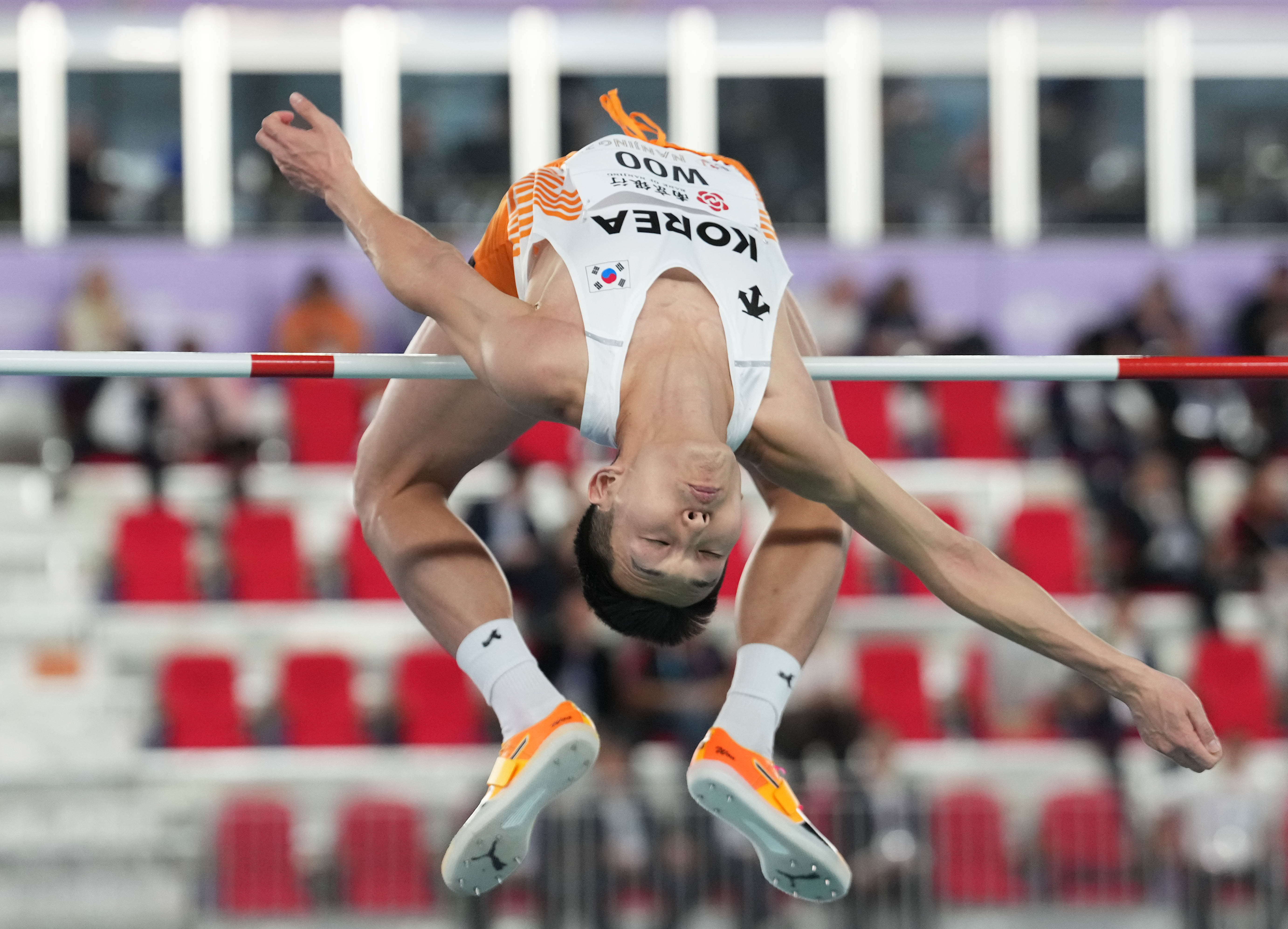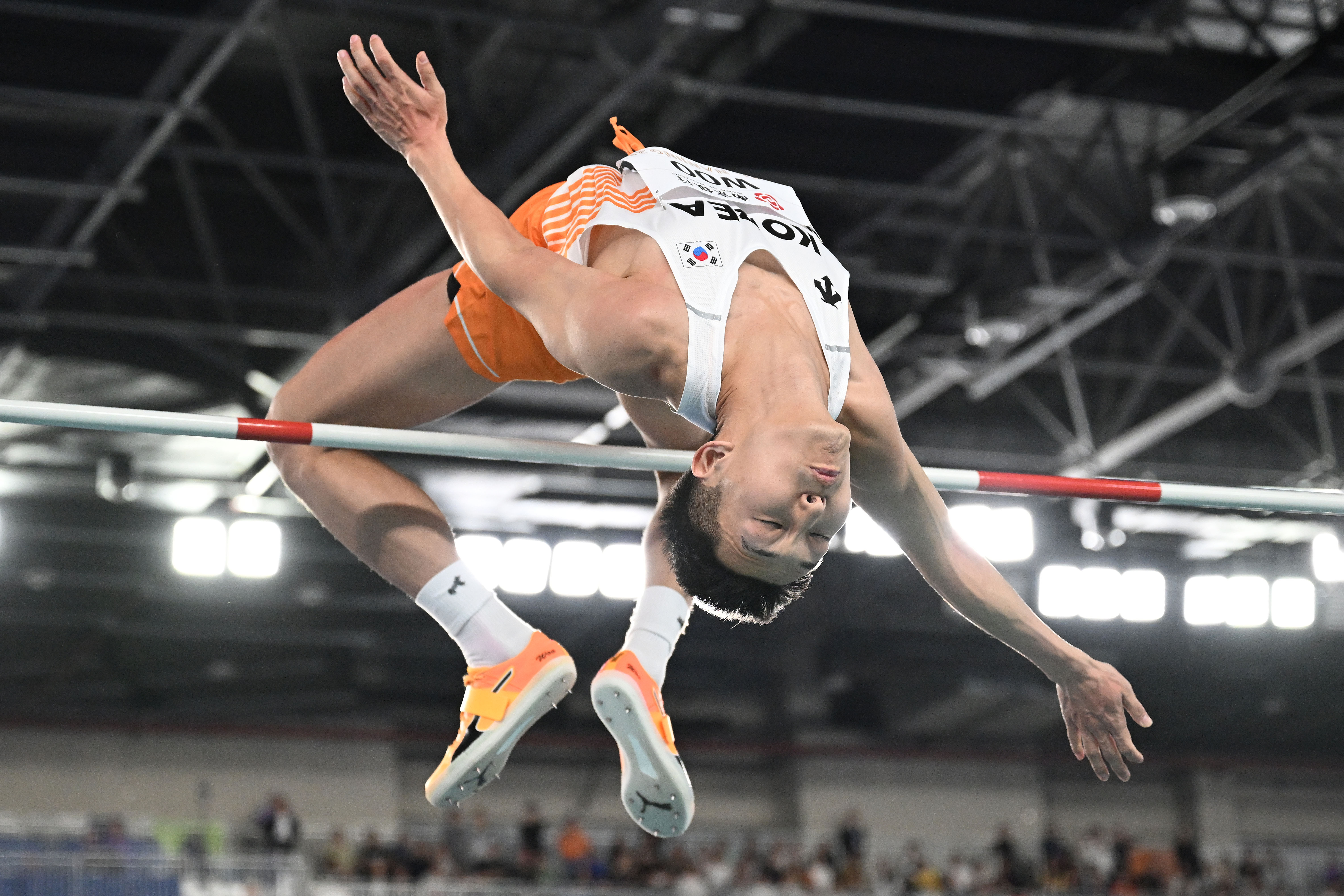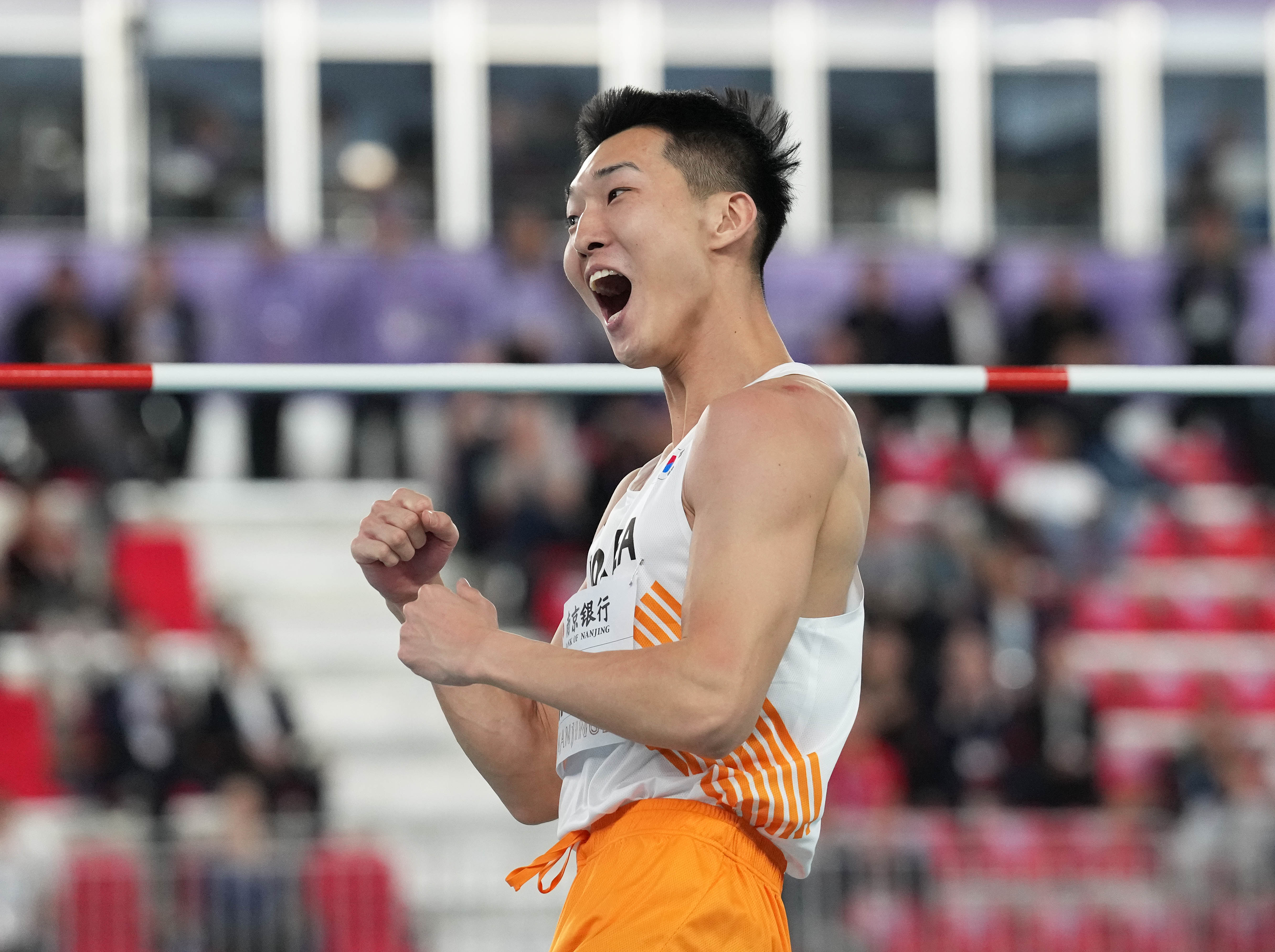 当日,在江苏南京举行的2025南京世界田联室内锦标赛男子跳高决赛中,韩国选手禹相赫夺得冠军。
