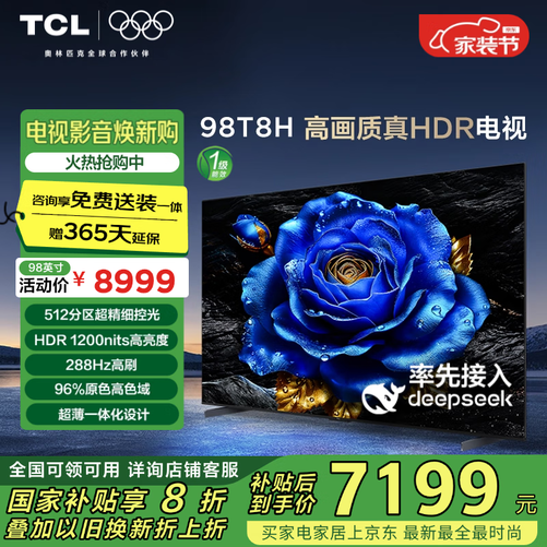 TCLT8H系列98英寸超薄液晶智能电视,为您打造震撼客厅巨幕体验!搭载2.1声道音响系统,带来沉浸式音效享受,无论是观影还是游戏,都能让您身临其境。这款电视机外观简约时尚,适合各种家居风格,同时拥有强大的智能功能,满足您对娱乐的多样需求。