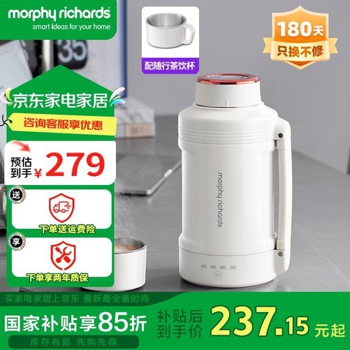 摩飞MR6061便携式电热水壶,椰奶白简约设计,大容量1L满足您全天补水需求,无论是居家使用还是户外运动,都能轻松应对。