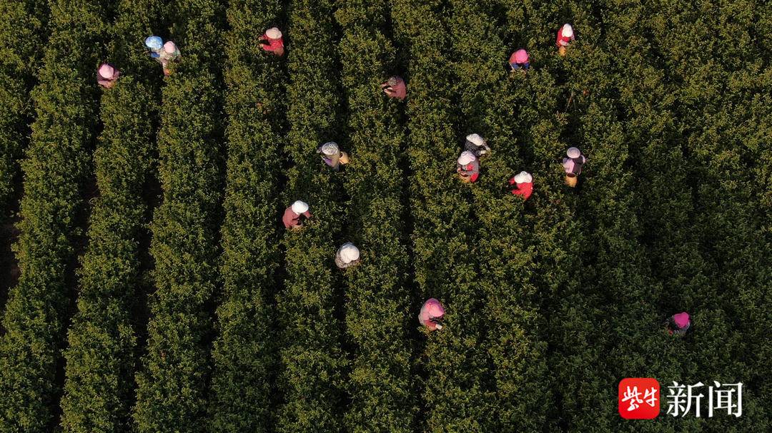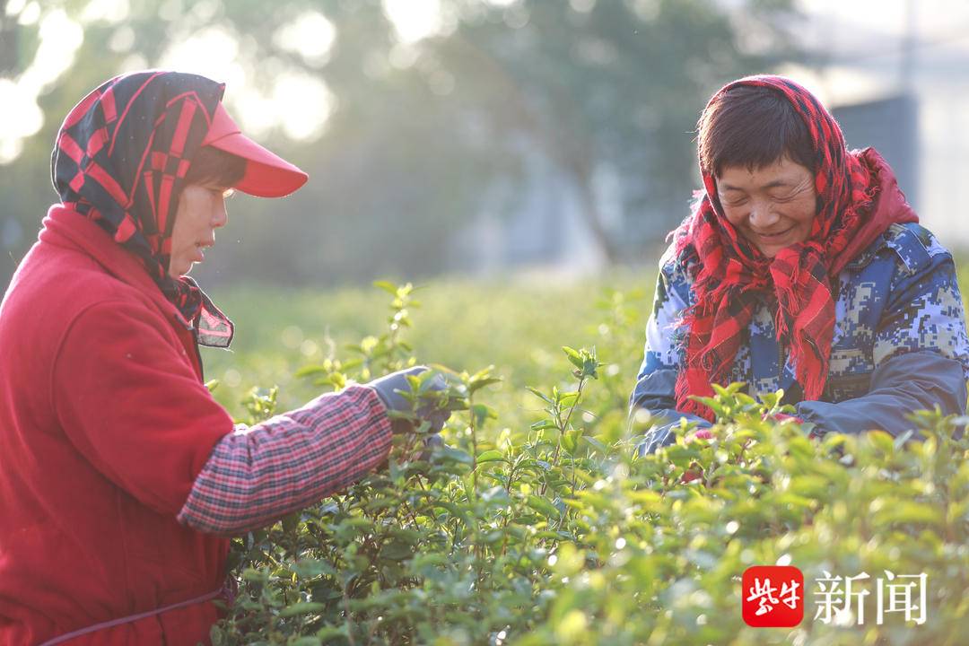 23日一大早,在位于句容的江苏茶博园里,嫩绿的新芽挤满枝头,散发出阵阵清香。采茶工们迎着清晨的阳光身背茶篓,穿梭在茶树间,手指翻飞,熟练地将一颗颗嫩芽采摘下来。据现场工作人员介绍,今年春茶开采时间较往年有所推迟,不过茶树芽头饱满、长势良好。句容市茶叶协会副会长戴军舰告诉记者:“今年由于前期气候的影响,低温和干旱情况的影响,造成了今年的茶叶比以往推迟了一个星期左右的时间。虽然时间推迟了,但同时茶叶生长期也长了,所以茶叶的品质比以往更好。”