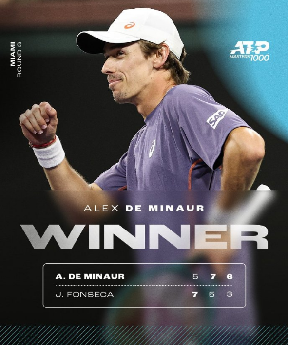 北京时间3月25日,10号种子的德米纳尔在决胜盘0比2落后下连赢5局,最终以5比7、7比5、6比3逆转巴西新星丰塞卡,将在下一轮与贝雷蒂尼争夺一个迈阿密大师赛的八强席位。