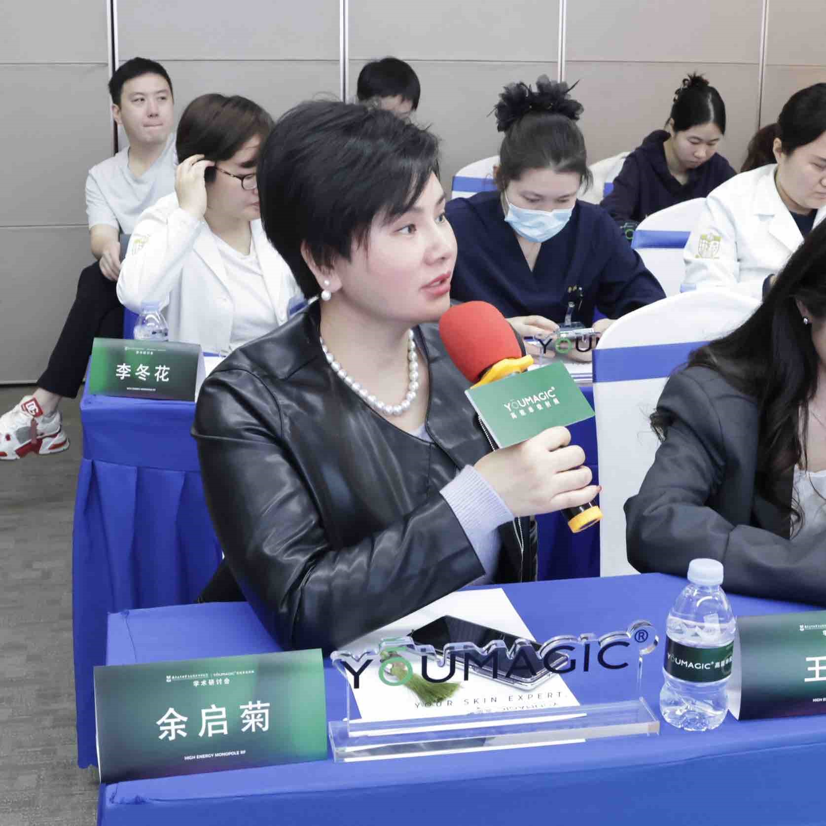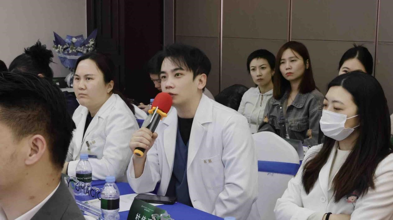 南京医科大学友谊整形外科医院还汇聚了众多临床经验丰富的医生,在YOUMAGIC的使用方面已积累了可靠的实践经验。医院的多位院长和主任在研讨会上进行了治疗案例分享,总结出了更适合亚洲皮肤的打法经验。陈超主任还针对单个个性化案例的治疗方案,与YOUMAGIC研发负责人进行了细节探讨。