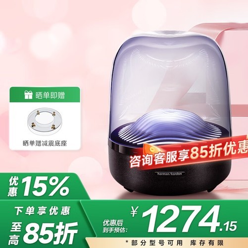 哈曼卡顿AuraStudio3桌面蓝牙音箱,以独特的音乐琉璃3代设计和360度全方位立体音效,为您带来震撼的听觉体验。这款音箱采用6个40mm中高频扬声器,以园周状等距布置,营造出萦绕空间的环绕音效,配合全新下沉式130mm低音炮,输出高达100W的低频震撼力,让您沉浸于高品质音效之中。经典透明外观搭配美轮美奂的LED灯光效果,不仅是一款音频设备,更是一件艺术品。然而需要注意的是,透明罩容易刮花,蓝牙连接偶尔不稳定,音量较低时可能无法完全展现效果,同时设备体积较大,占用一定空间。适合追求高品质音效和独特设计的用户选择。