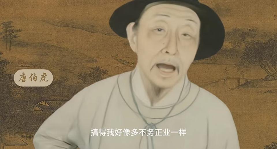 “有人说我只会风流,什么花前酌酒,月下秋香,搞得我好像多不务正业一样……说我疯癫,那我问你,父母妻儿妹同一年全部去世,换你你不EMO啊?你回答我!”短视频中,“江南四大才子”之一的唐伯虎,借助AI技术“复活”后“回怼”后世对其“风流”的误解。