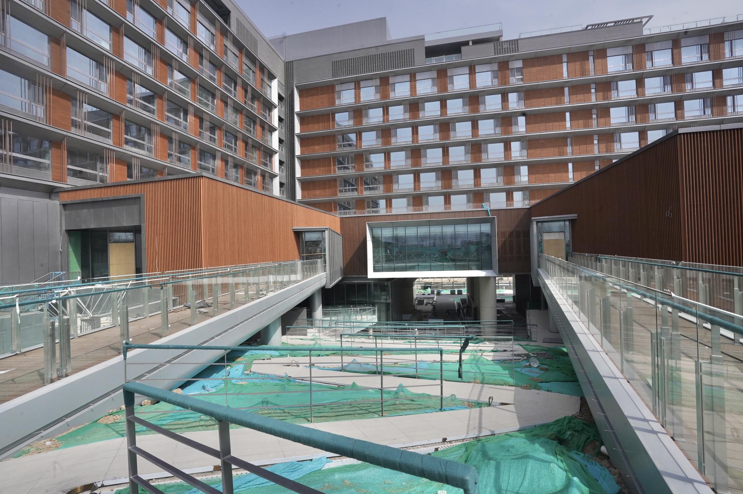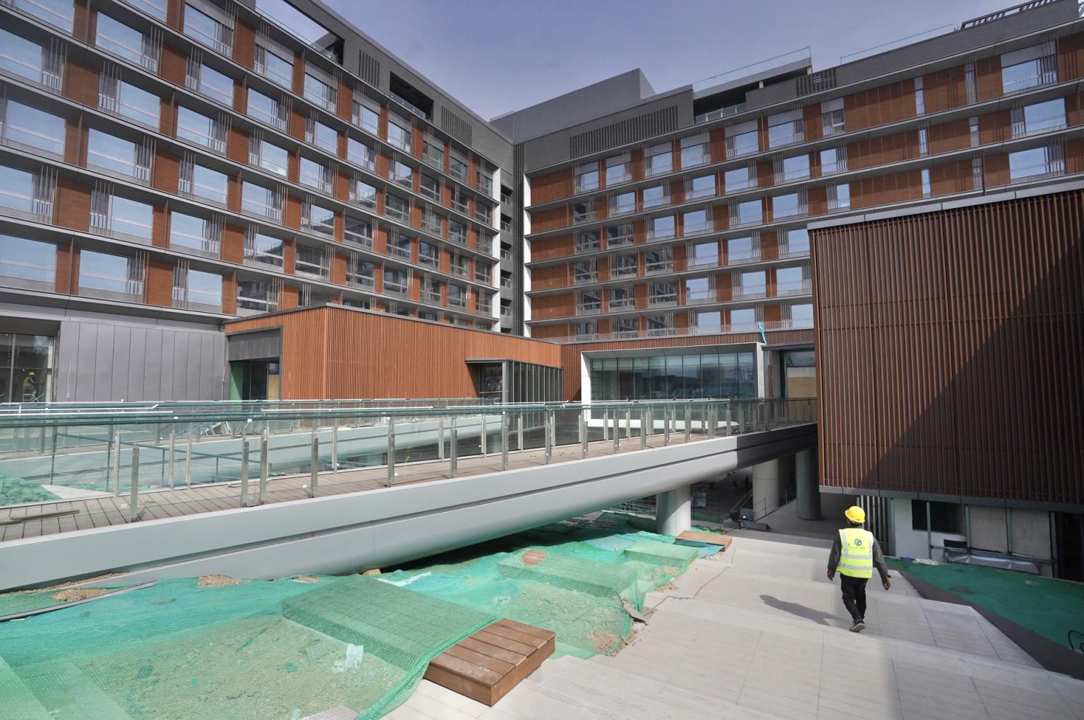从枢纽内部顺着坡道一路蜿蜒向上,到达三楼后,视野格外开阔。“我们在枢纽三层建设了一座屋顶花园,未来这里将会铺设草坪,栽种竹木,成为公众休憩放松的好去处。”北京城乡建设集团环球影城北综合交通枢纽工程项目经理魏斯告诉记者,随着春天的到来,枢纽也即将开始景观园林施工,为屋顶花园增添更多绿意。