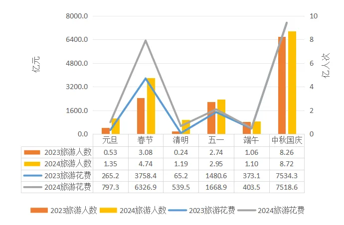 在国内旅游发展总体特征方面,《报告》提到的第一个特点就是“国内旅游人数稳步提升”。相关数据显示,2024年国内旅游人数达56.15亿人次,比2023年增加7.24亿人次,增长14.8%。其中,节假日的旅游市场更是一派火热。像《报告》中有数据特别提到,2024年的元旦假期全国出游人数比2023年增长达154.7%。