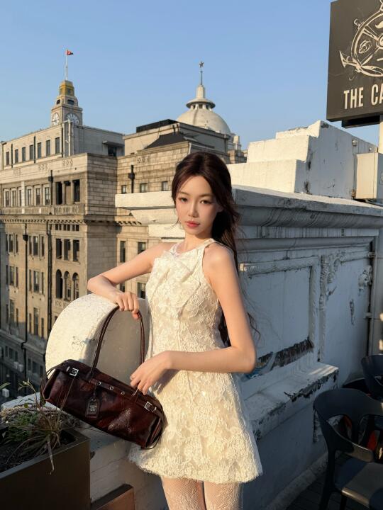 感受春天 - 樱花季当然要穿漂亮衣服 jorya真的适配任何场合 亮晶晶的蕾丝设计太美啦 Look:JORYA WEDDING系列