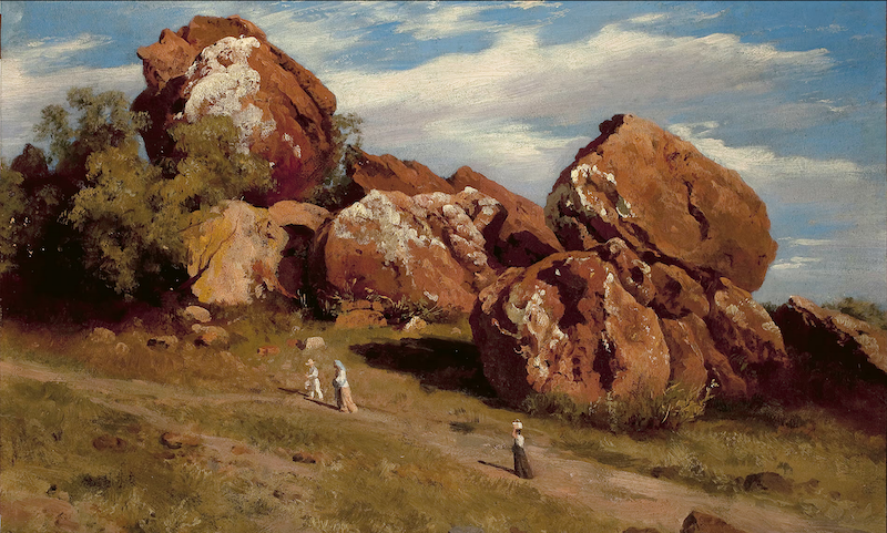 贝拉斯科于1894年创作的油画《岩石》(Rocks)在尺寸和形式上都堪比一幅巨幅肖像画,但画的中心并非描绘穿着塔夫绸或燕尾服的社交名媛,而是一块块巨大的红褐色岩层。这并非一个非常特别的岩层,而是可以在任何山间漫步时都能遇到的那种岩块。