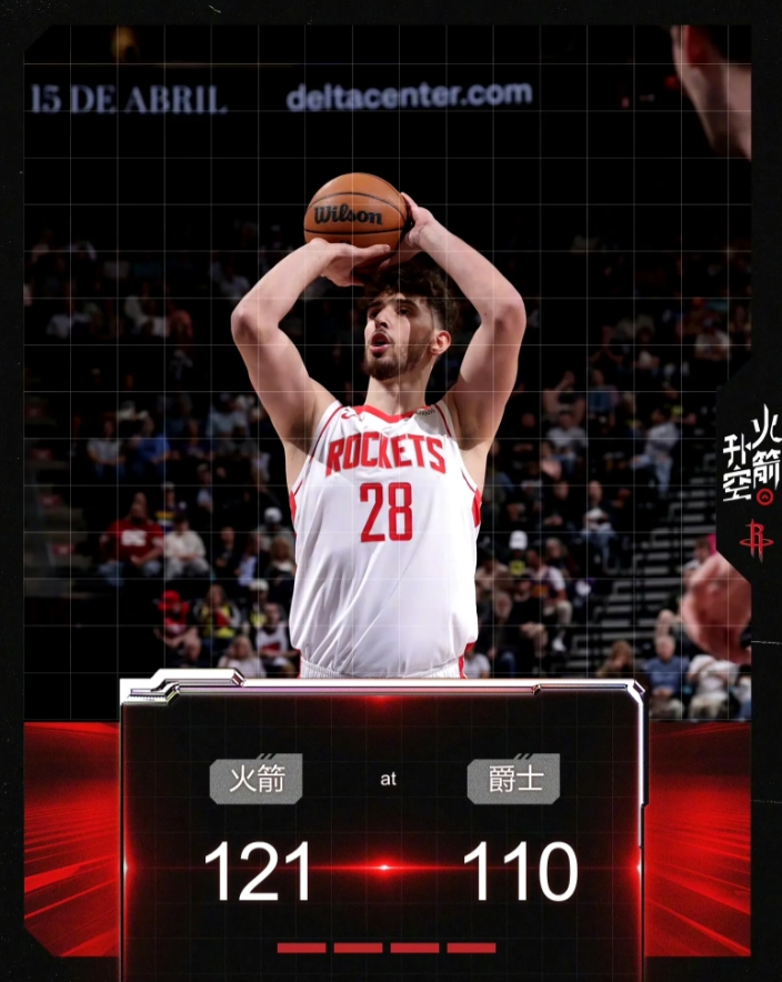 火箭121:110爵士。
