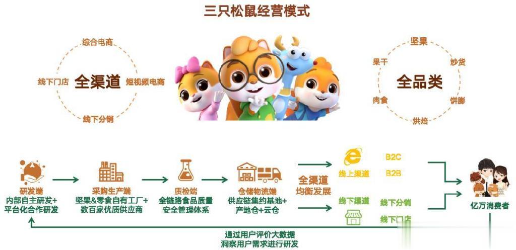 事实上,快速发展起源于电商的三只松鼠,通过线上互联网销售模式的创新,实现了规模的快速拓展,从而构建起全国化的品牌认知与势能,累计服务超1.7亿位消费者。