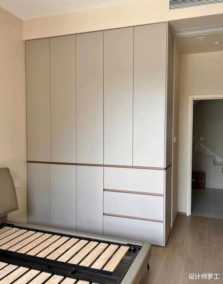 虽然衣柜做一门到顶更简洁大方,但是门高过高,在长时间使用之后容易变形,导致柜门无法关闭。