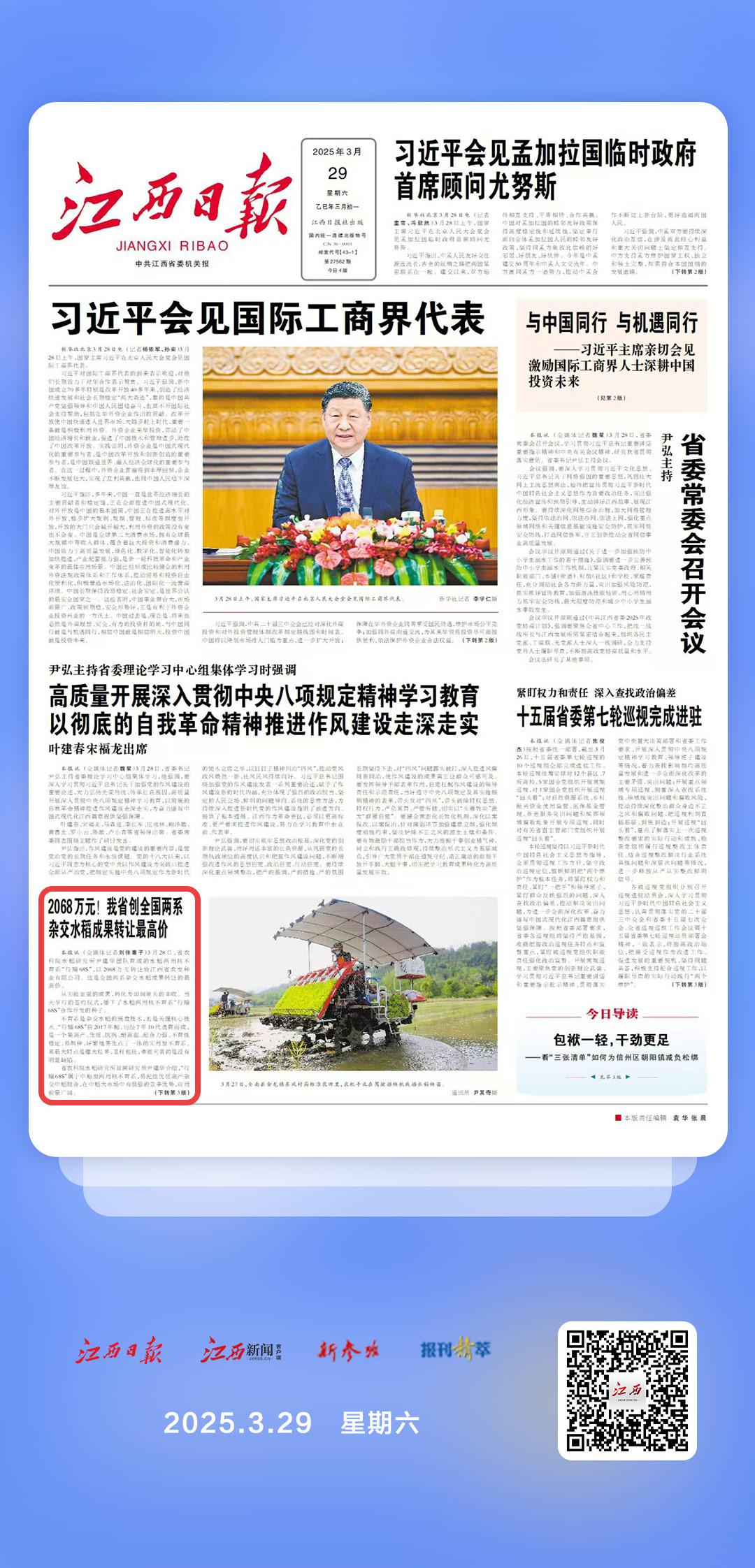 “‘行瑞68S’是目前国内最好的两用核不育系之一,为我们提供了与上市公司比拼的品种基础。”尹建华说,“‘行瑞68S’有望肩负起‘赣种强芯’的历史使命。”