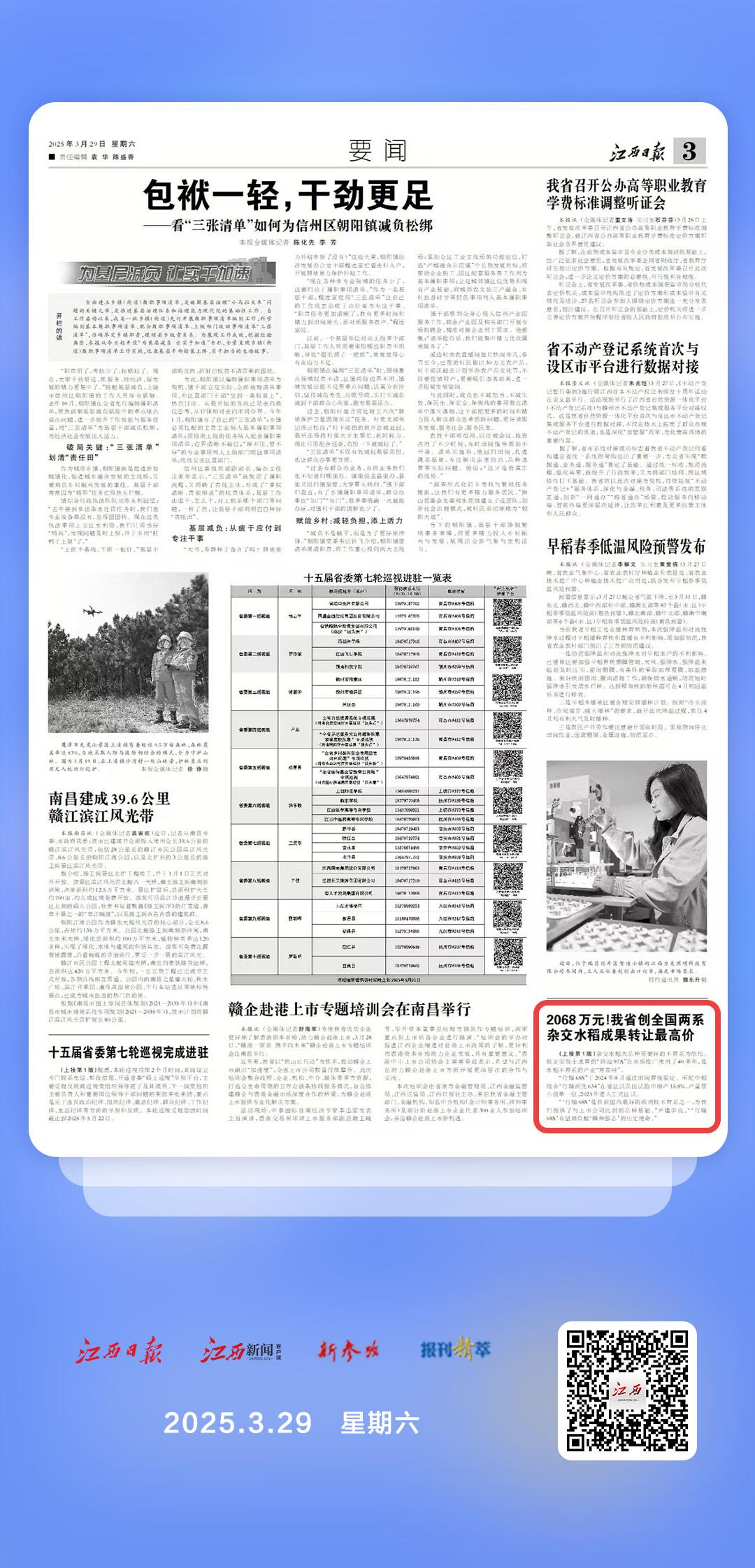 江西新闻客户端讯(江西日报全媒体记者刘佳惠子)3月28日,省农科院水稻研究所尹建华团队育成的水稻两用核不育系“行瑞68S”,以2068万元转让给江西省农发种业有限公司。这是全国两系杂交水稻成果转让的最高价。