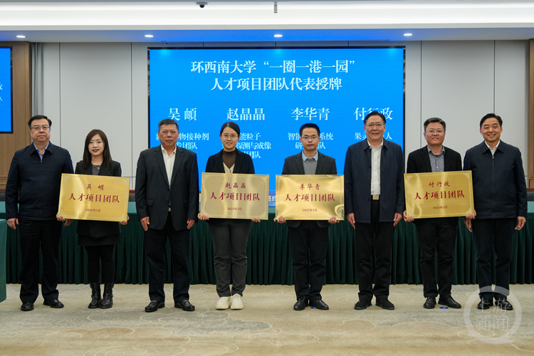 签约仪式上还为入驻环西南大学“一圈一港一园”的人才团队代表授牌。上游新闻记者了解到,此次获得授牌的人才团队包括李华青教授带领的智能控制系统研发团队、赵晶晶教授带领的高能粒子射线探测与成像项目团队、付行政教授带领的果灵机器人研发团队和吴頔副教授带领的新型生物接种剂研发团队。其中已成功孵化西大(重庆)智能设备有限公司、共生密码(重庆)生物科技有限公司、重庆果灵机器人有限公司等企业,为环西南大学“一圈一港一园”建设增添了新的活力。