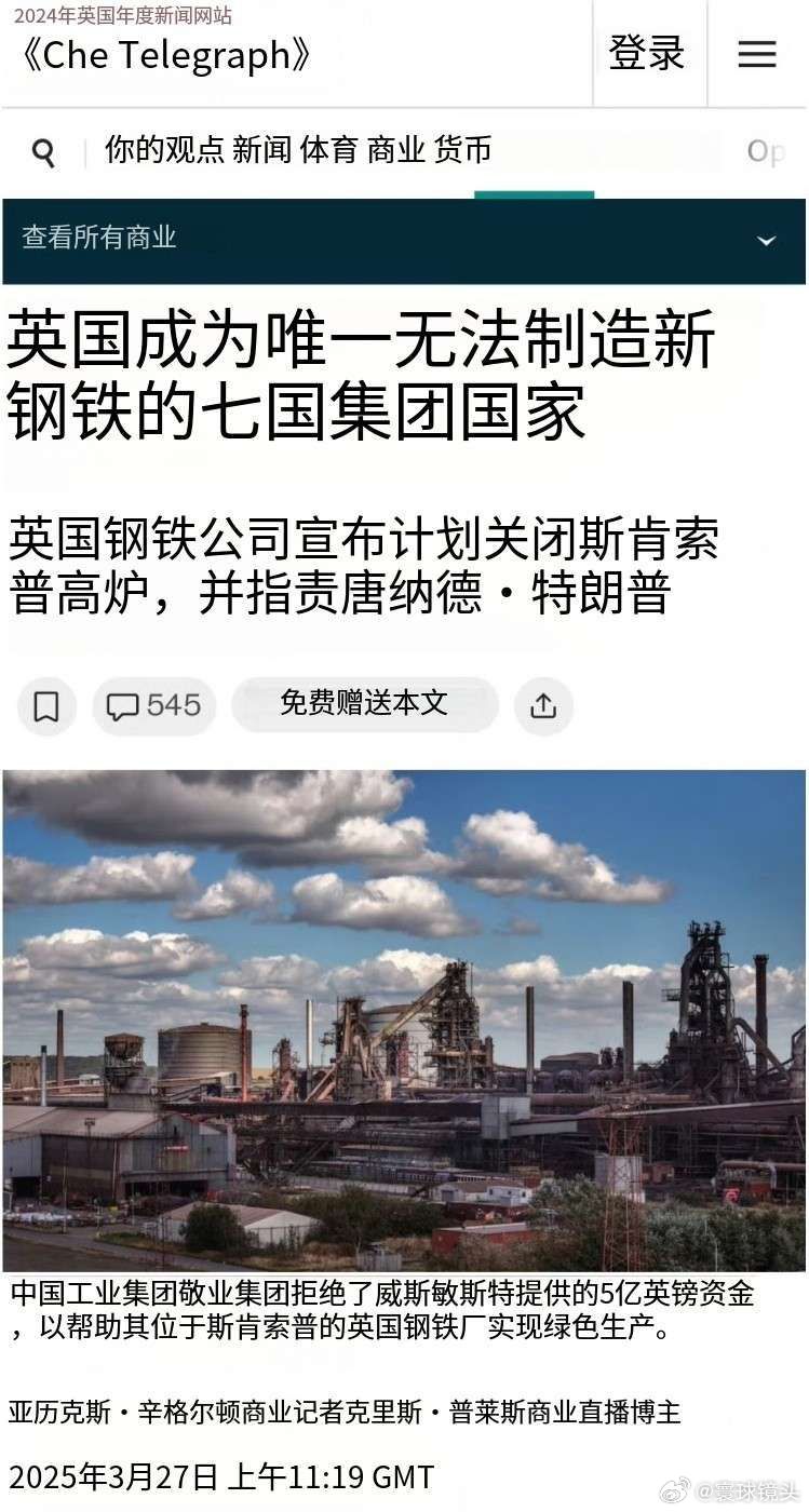 所谓最早开启工业革命的英国,在去工业化的道路上一去不复返啊。加速,加速![笑而不语][笑而不语][笑而不语]