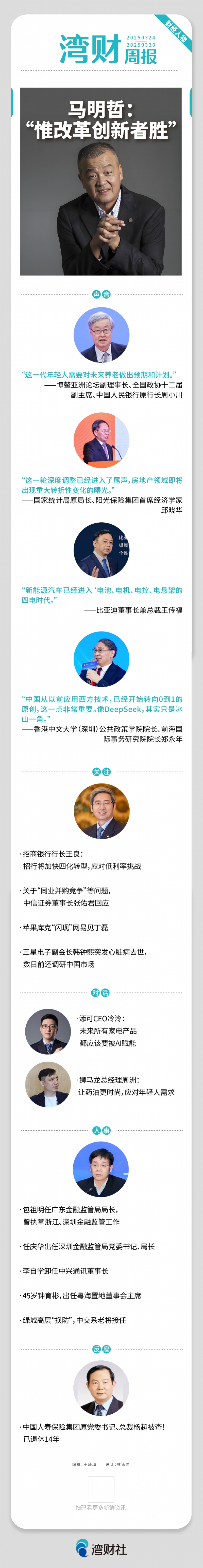 这份拥抱变革搏击长空的理念,相比往年有所变化。去年3月,马明哲在年报中称,“前行路上,有风有雨是常态”;“平安二字值千金”;为助力“加快建设金融强国”贡献平安力量。眼下,置身于深圳第一地标高楼平安金融中心,“宝刀未老”的马明哲释放新的信号:“惟改革创新者胜”。诸多信号背后,马明哲到底有何底气?作为十万亿级金融航母的“定海神针”,他的管理哲学,又该如何读懂?