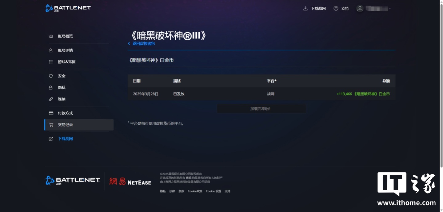 IT之家3月31日消息,据IT之家小伙伴反馈,战网国服已于3月28日发放了《暗黑破坏神3》的虚拟货币“白金币”,暗示着国服有望回归。