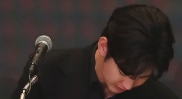 刚到会场的金秀贤先向记者鞠躬,之后哽咽发言。