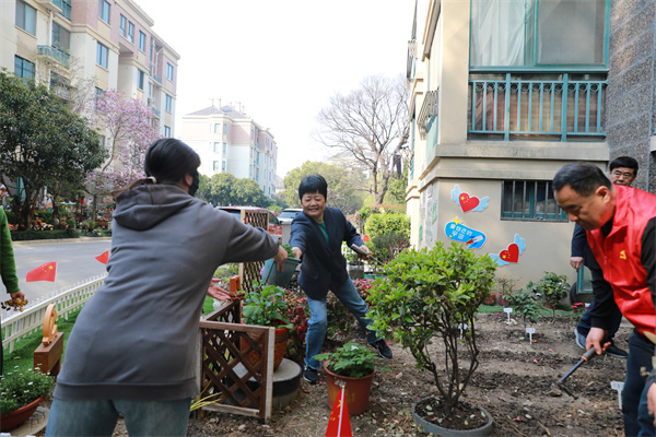 此前,该楼道前的绿化曾被大面积破坏,补种后效果不佳,居民意见较大。在第一综合网格的指导下,金豪居民区党总支发挥党建引领作用,发动社区“花草达人”、居民、楼组长、党员志愿者等群体,并整合物业公司、结对单位等多元力量参与,以小区微景观改造撬动社区“大幸福”。