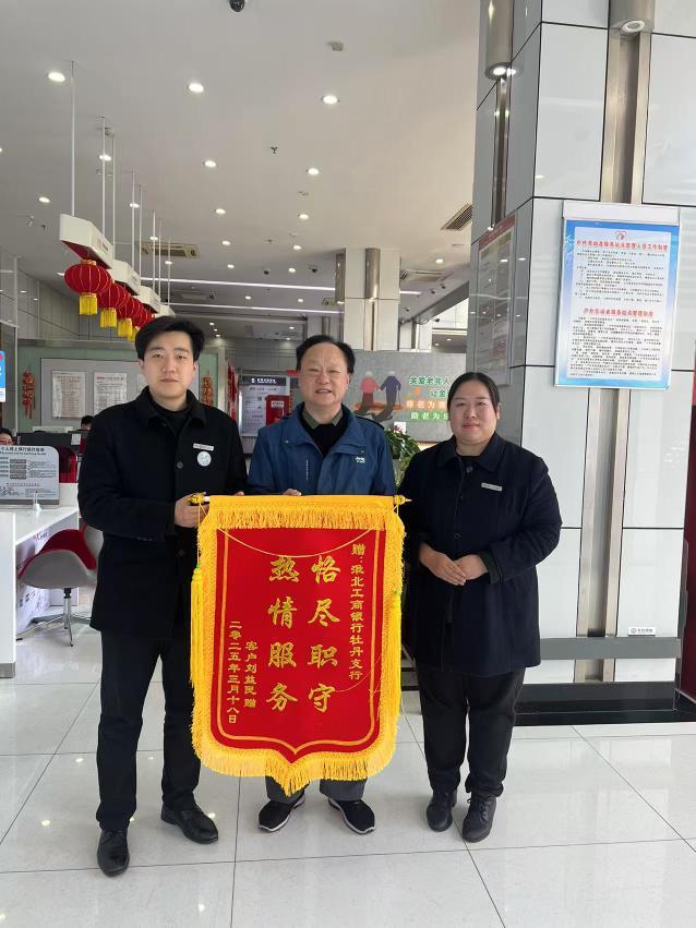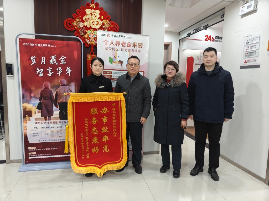 “整个服务过程高效又贴心,能够真正站在老人家的角度思考问题,展现了工行员工的专业素养和敬业精神。”老人亲属目睹了整个服务过程,感慨道。也正是因此,2025年1月27日,老人亲属专程赶到相北支行,送上一面写有“办事效率高,服务态度好”的锦旗。