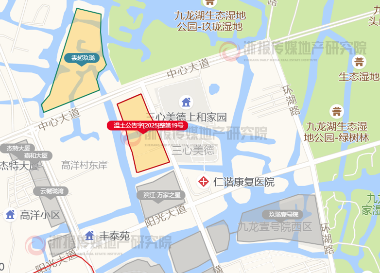 地块位于温岭市城西街道中心大道南侧、横湖北路西侧。周边整体区位优越,水系环绕四周,风景宜人。不远处便是九龙湖湿地公园,宜居属性大大增强。