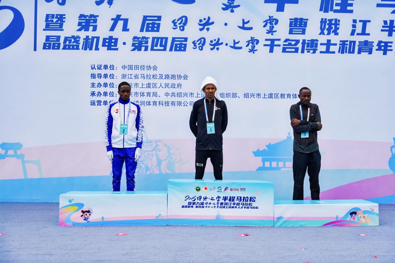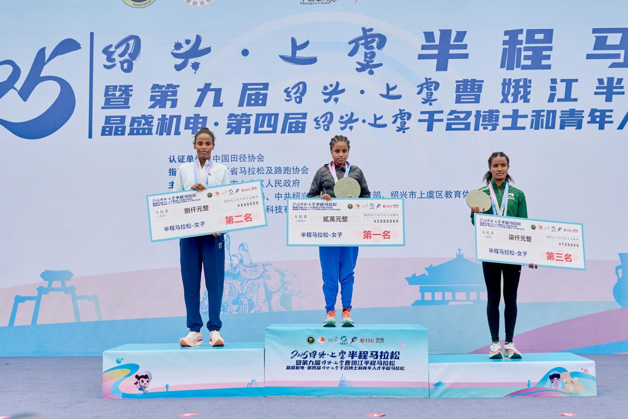 经过激烈角逐,比赛分别产生2025绍兴·上虞半程马拉松、晶盛机电·第四届绍兴·上虞千名博士和青年人才半程马拉松两组冠军。MengistuBekeleTedecha以1小时02分48秒的成绩夺得2025绍兴·上虞半程马拉松男子组冠军,打破赛会纪录,EnatneshWallelignTadesse以1小时12分34秒成绩摘得女子组冠军,同样打破赛会纪录。王魁良以1小时11分32秒的成绩夺得博马男子组冠军,熊怡以1小时25分31秒的成绩夺得博马女子组冠军。