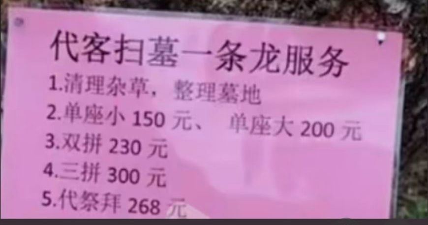 “代客祭扫”服务兴起价格大多为100元至上千元