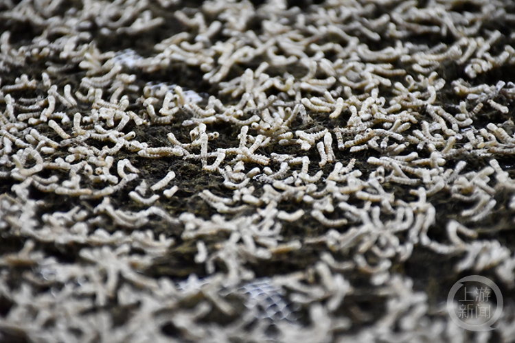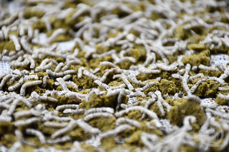 在黔江区濯水镇,今年第一批家蚕进入三龄期。蚕房里,密密麻麻的蚕宝宝布满了蚕箔,正在大饱口福。不过,它们吃的并不是桑叶,而是人工合成的饲料。