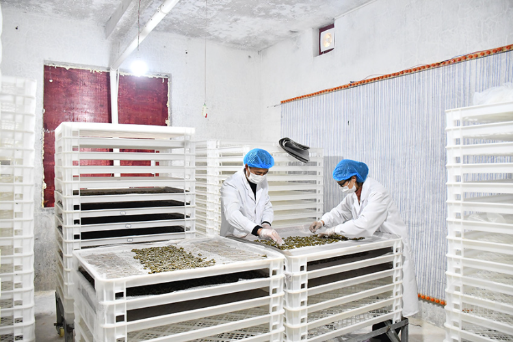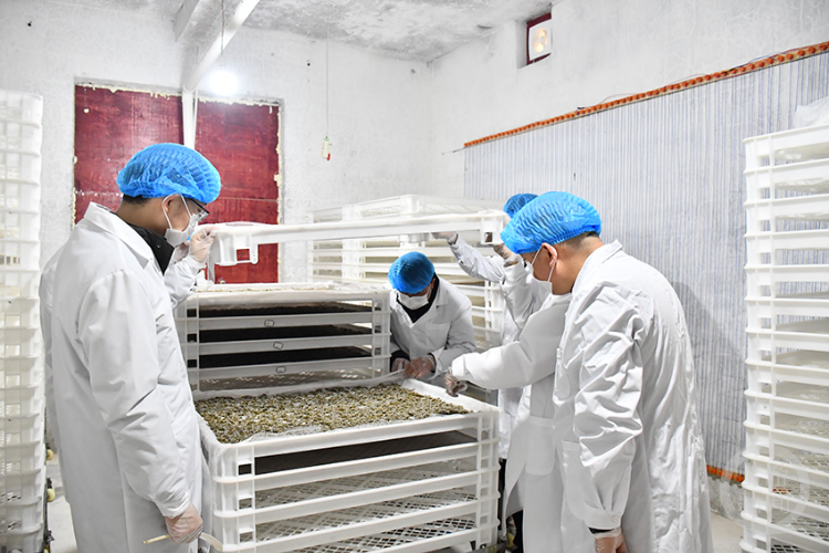 蚕桑技术人员查看家蚕发育。