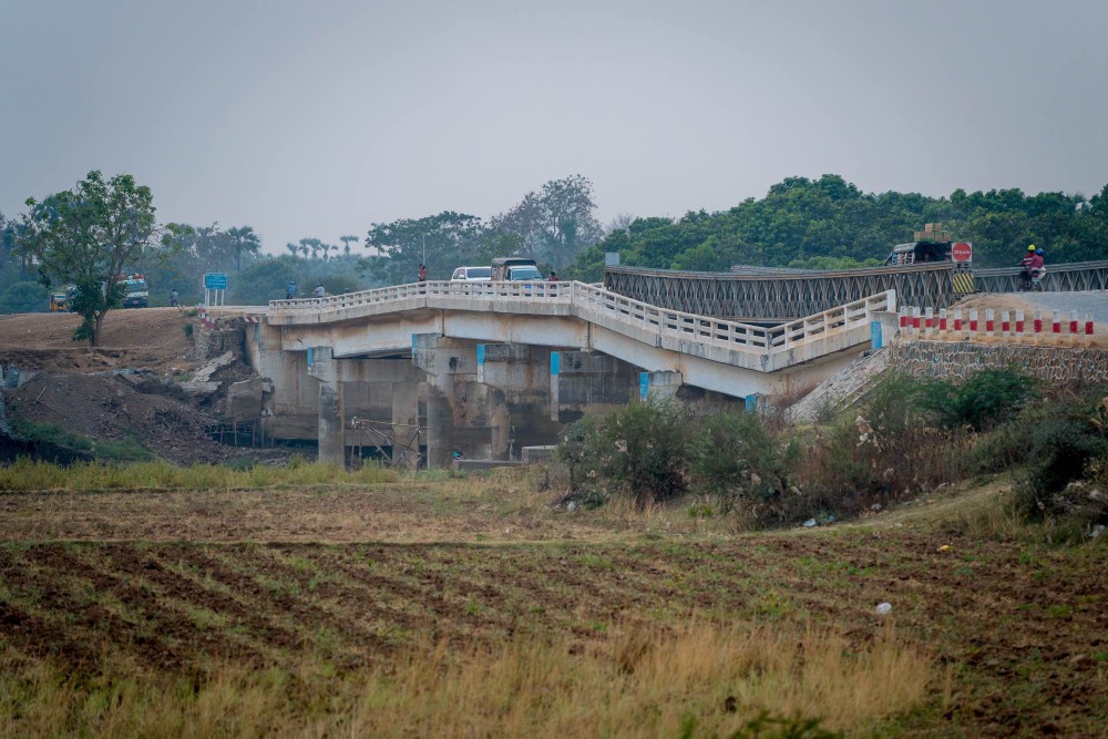 返程时经过的桥,其中一段垮塌,暂时架上新的部分以供通行。