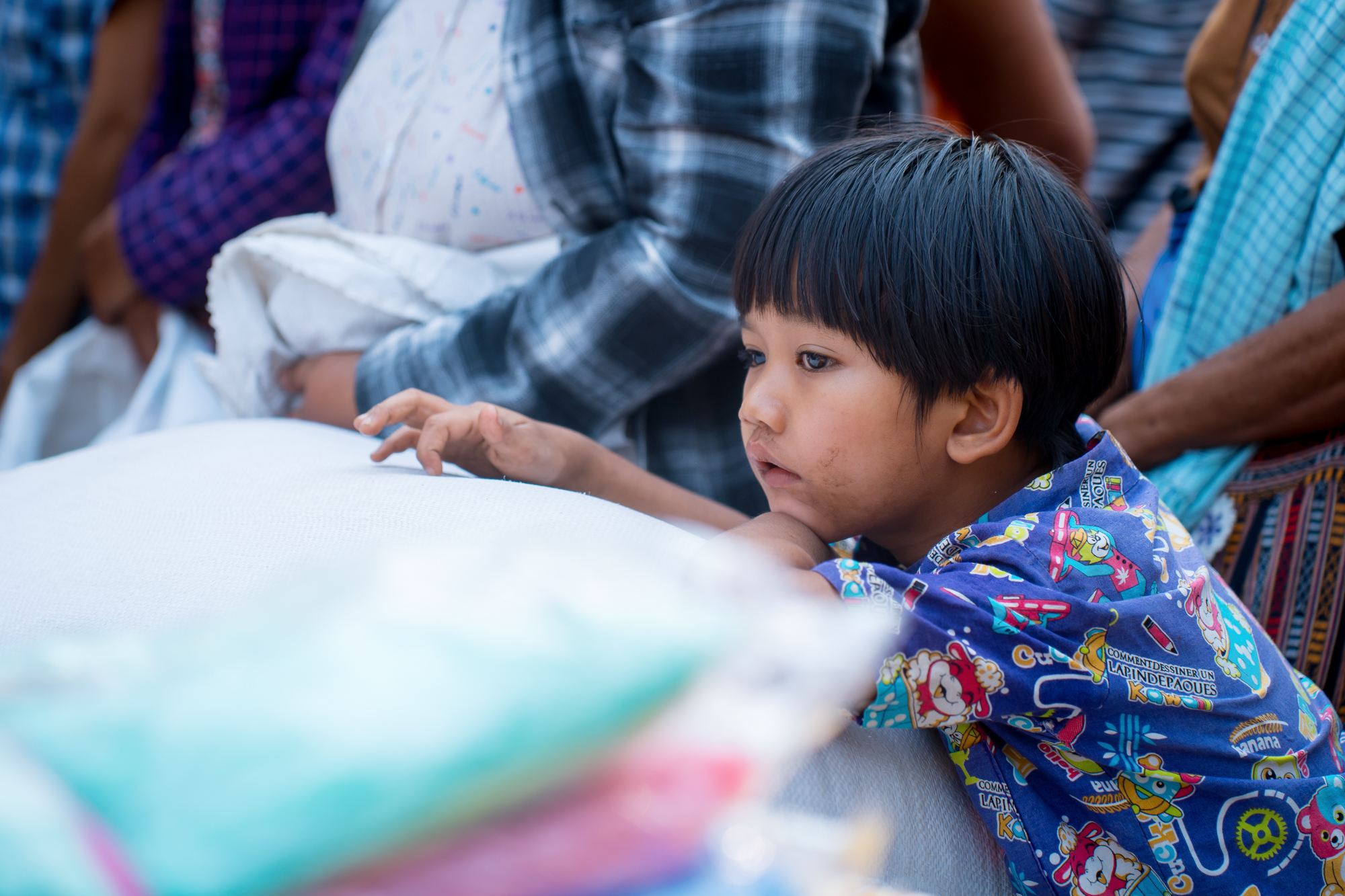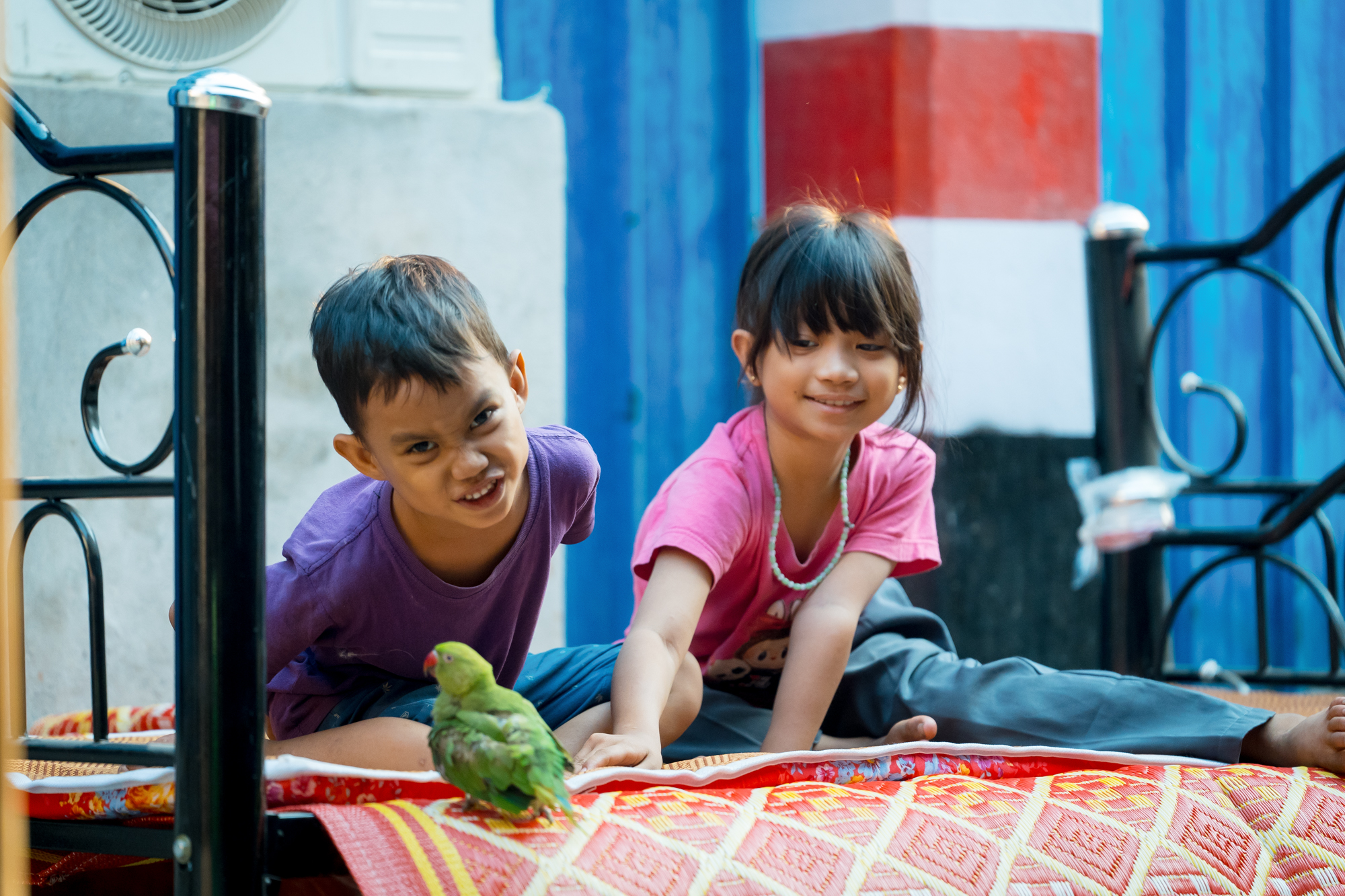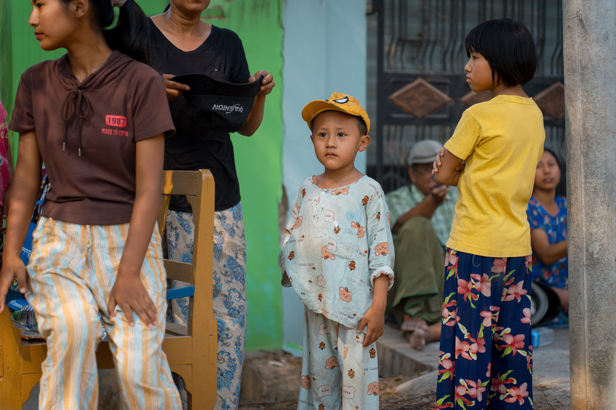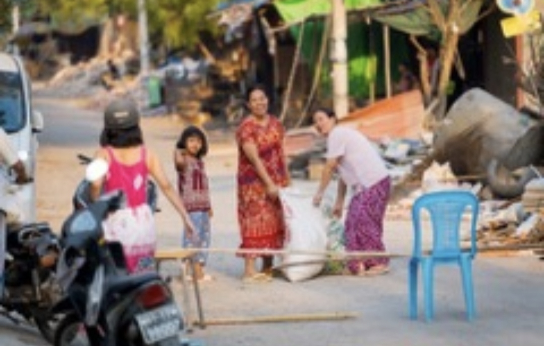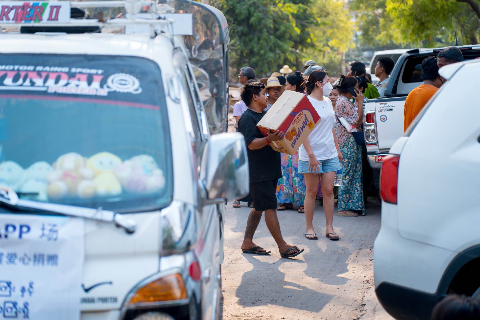 4月2日,缅甸湖南商会和华人志愿者为曼德勒灾民们送开救灾物资,当地居民排队领物资时,不少孩子也和家人们一同前来。经历过地震的孩子们,有的脸上还带着恐惧,有的正开心逗弄一直可爱的鹦鹉,快乐正在慢慢回来。