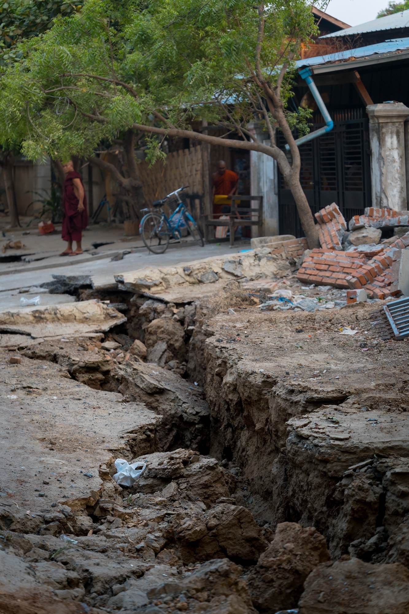 因瓦位于曼德勒南面,临伊洛瓦底江,与实皆地区隔岸相对。它曾作为多个王朝的首都,内有数个知名古建筑。阿宝此前常跟随做婚纱摄影的丈夫去此处取景,“它是一个旅游胜地”,但经历此次强震,“变成了一个废墟。”通过定皆地区的老桥因瓦大桥也断裂,新桥也出现多处裂缝且引桥损毁。
