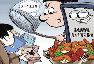近日,《法治日报》记者注意到,在多个短视频平台和社交平台上出现了大量宣称“摆个小摊就能衣食无忧”的博主,并在其账号主页和发布的视频中或明示或暗示:可以添加私人社交账号,交学费获取“摆摊秘籍”。在直播效果和短视频宣传的影响下,有不少人交了学费想靠摆摊发家致富。