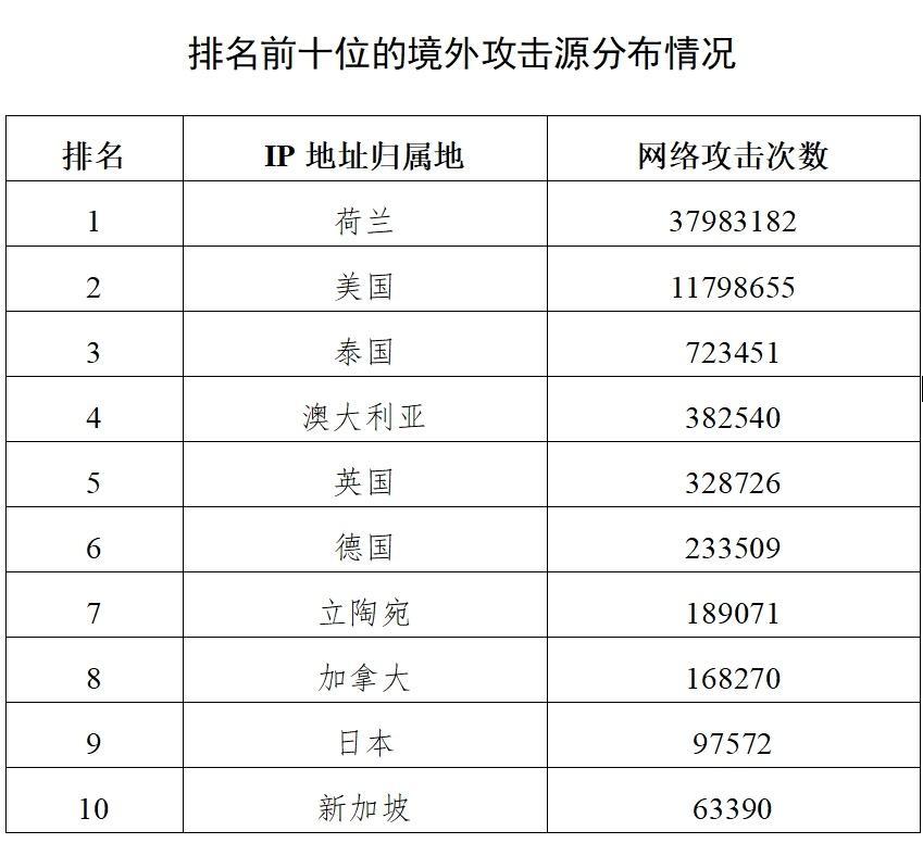 黑龙江省内关键信息基础设施遭受境外攻击情况