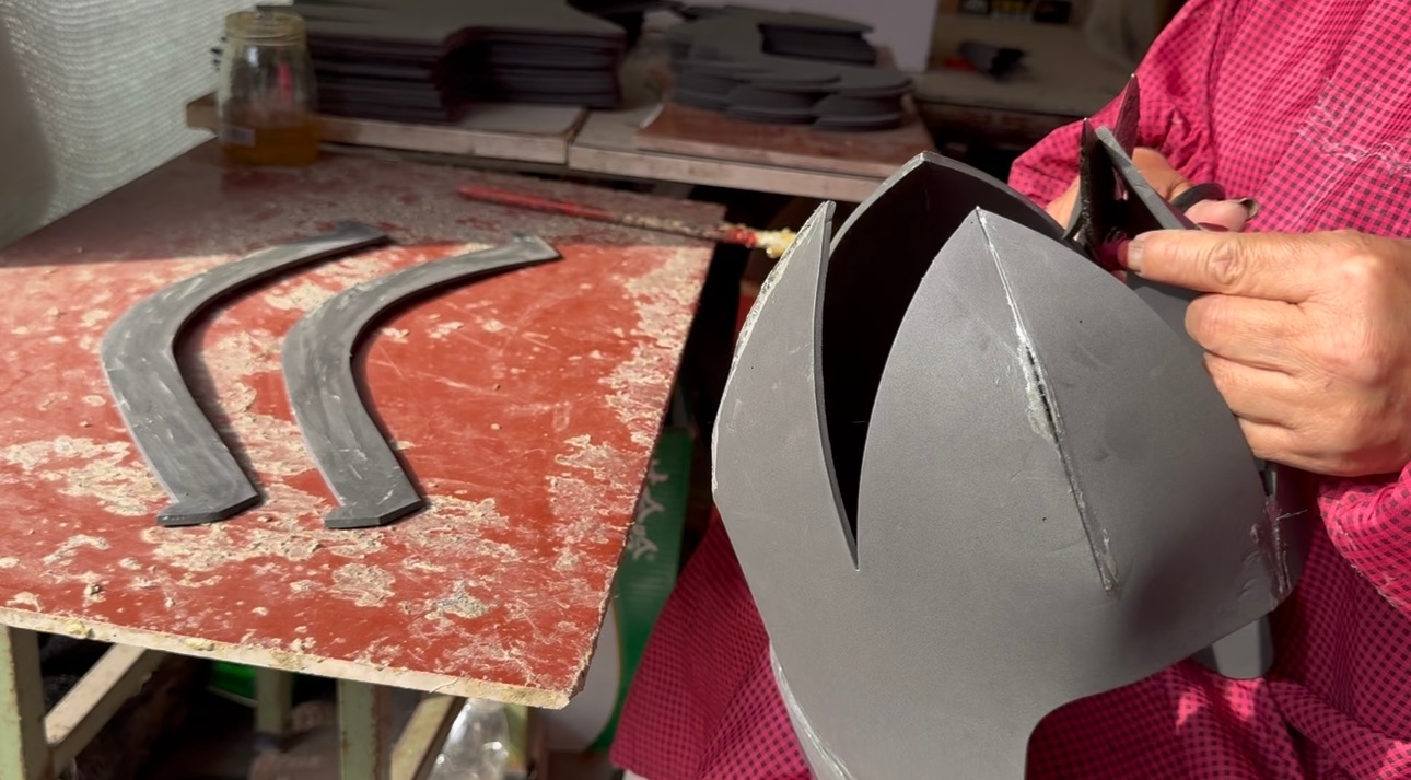 说话间,张金凤穿上工作罩衣,坐到一张小方桌前开始粘制头盔,手法娴熟,有条不紊。顷刻间,基于原本的零散材料,头盔已逐渐成形,立体而逼真。她告诉九派新闻,如果订单多,委托方要得急,为不耽误对方使用,通常要夜晚加紧做。