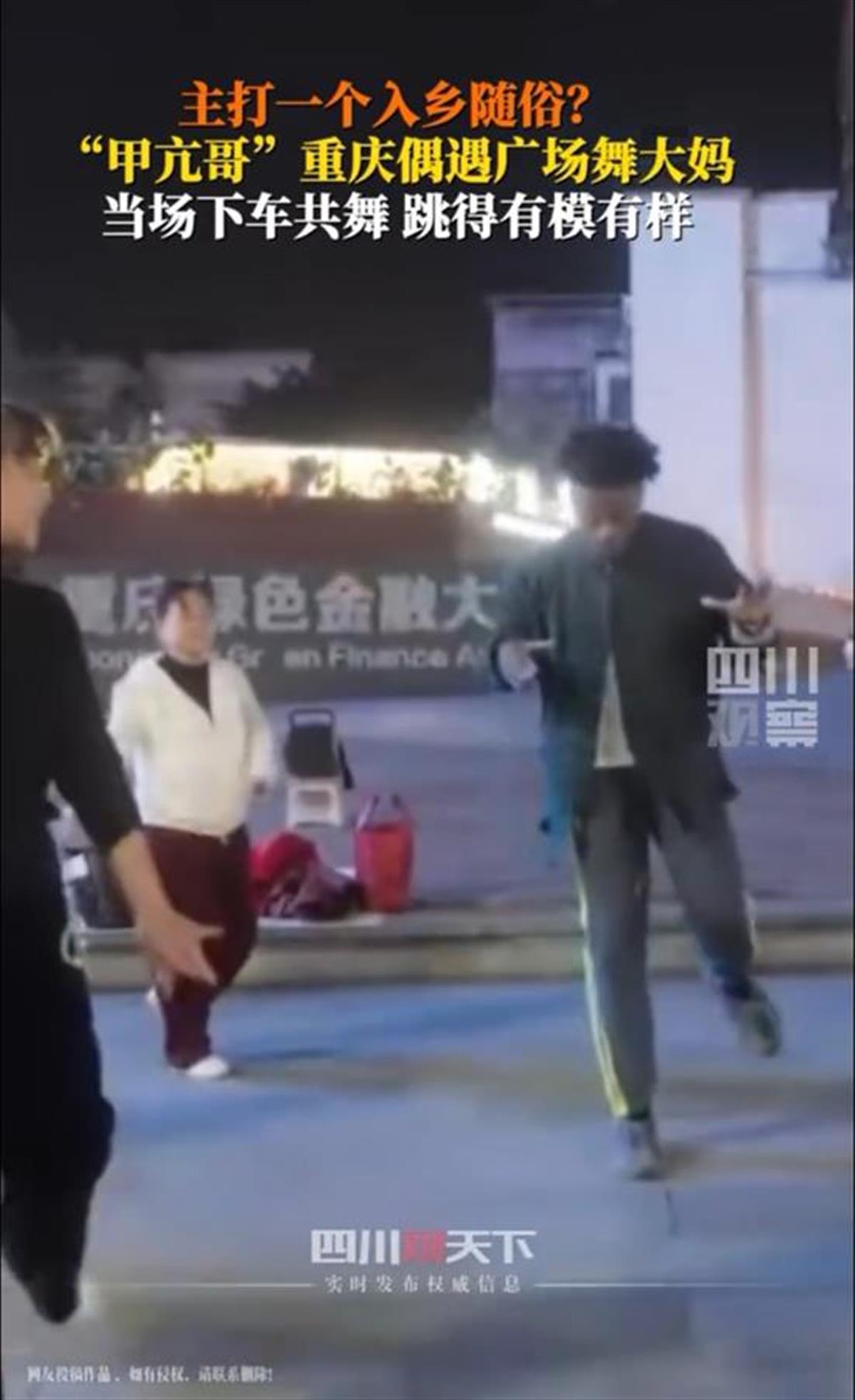 据四川观察报道:4月2日,“甲亢哥”重庆行,偶遇山城广场舞大妈,当场下车共舞,秒变舞林高手,跳得有模有样,这波文化输出,山城广场舞满分。