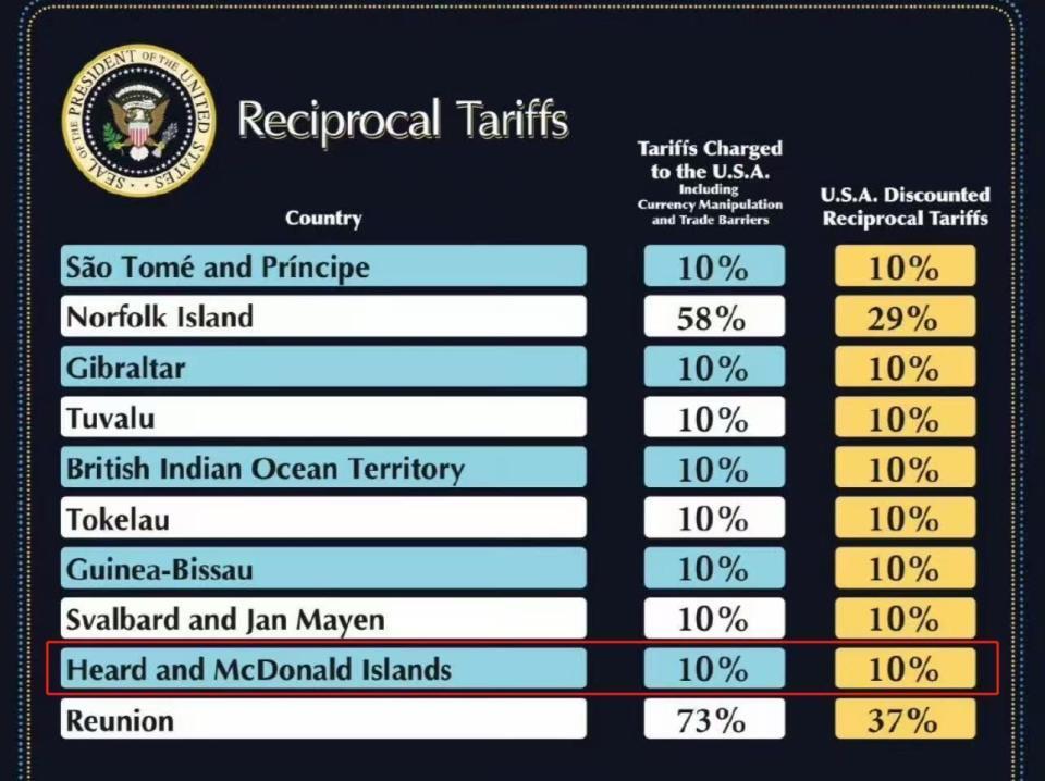 白宫官员表示,赫德岛和麦克唐纳群岛是澳大利亚的海外领地,所以也被列入加征10%关税的名单之中。