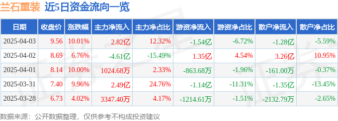 4月3日的资金流向数据方面,主力资金净流入2.82亿元,占总成交额12.32%,游资资金净流出1.54亿元,占总成交额6.72%,散户资金净流出1.28亿元,占总成交额5.59%。