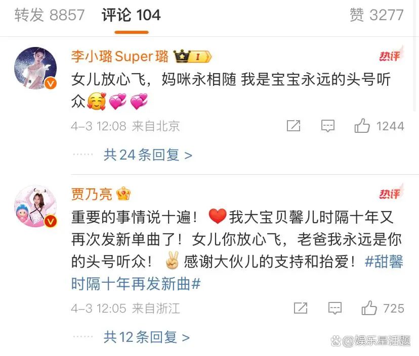 这是她继十年前与父亲贾乃亮合作《大王叫我来巡山》后再度发布音乐作品,引发网友关注。