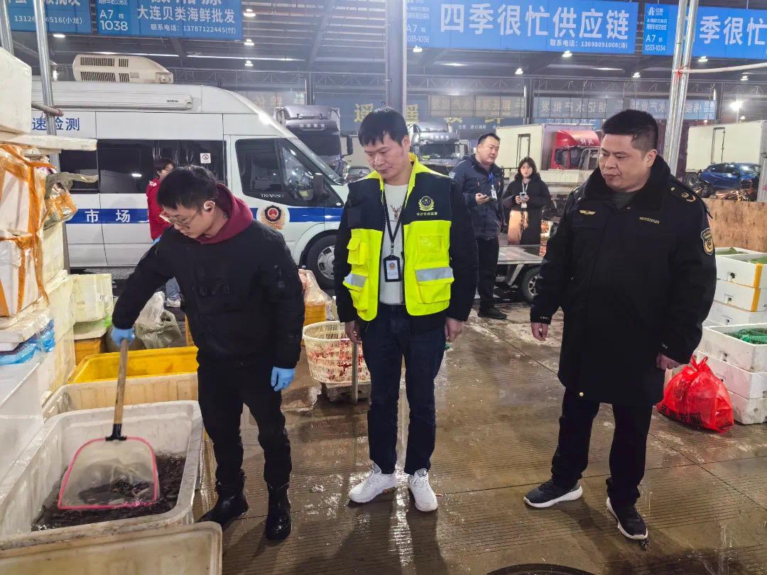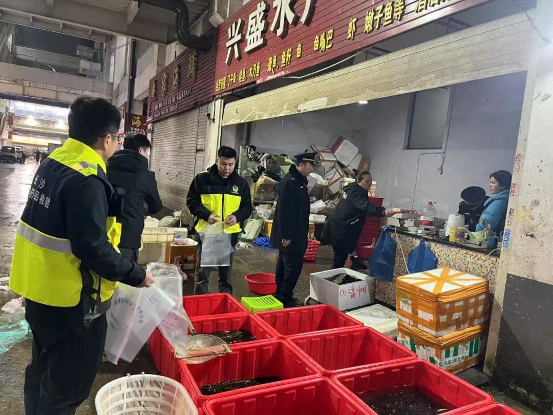 在水渡河、红星、马王堆农批市场,市场监管部门分别派驻4名执法人员组建工作专班开展驻点监管工作。每日随机抽查4台以上入场车辆,督促市场开办方落实进货查验制度及重点品类入场快检。三大农批市场每周各抽检一次,水产零售商每周抽检3家以上,并对抽检结果定期曝光,依法追溯、处置不合格产品。