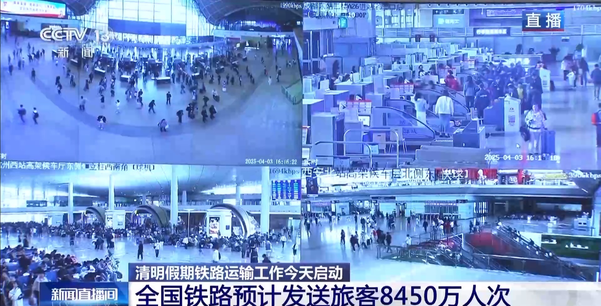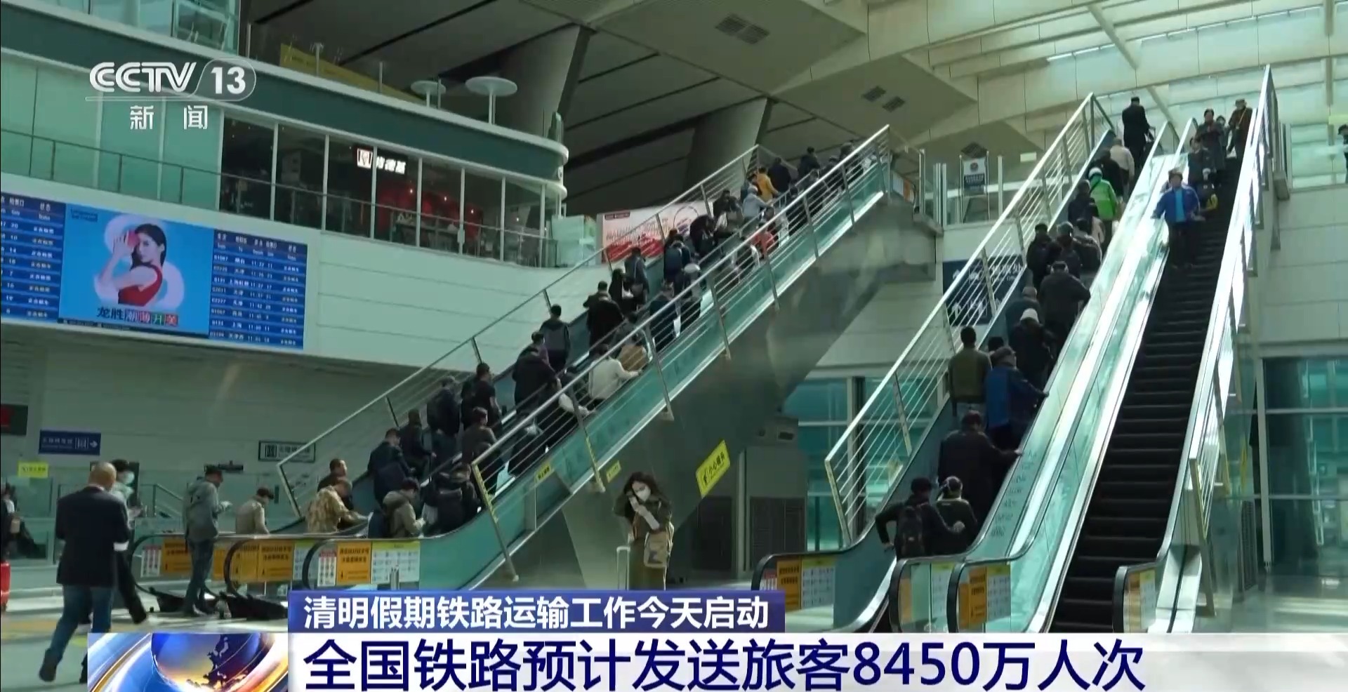 4月4日是清明节,铁路清明假期运输方案今天启动。整个清明假期,铁路预计发送旅客8450万人次,日均发送1690万人次。