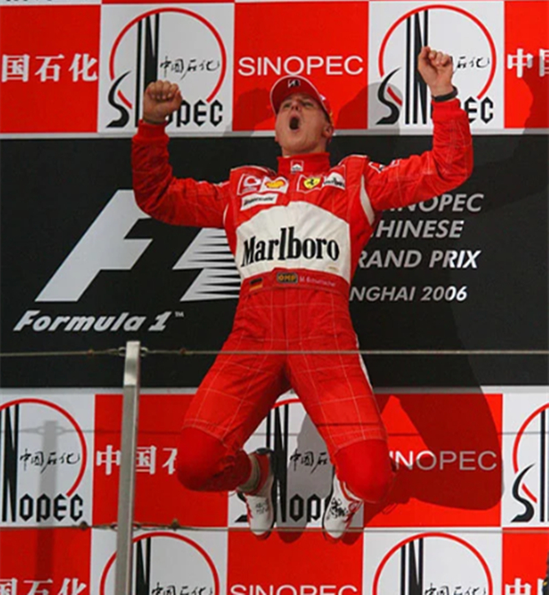 2006年F1上海站著名的“车王跳”,这也是舒马赫职业生涯的最后一个分站赛冠军