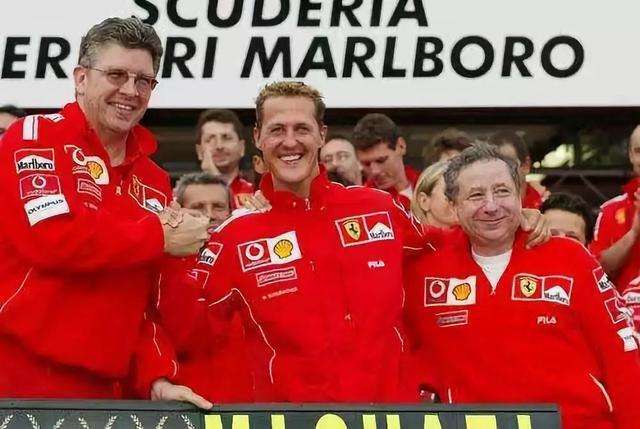 全盛时期的法拉利胜利“三叉戟”,从左到右为罗斯·布朗、迈克尔·舒马赫、让·托德