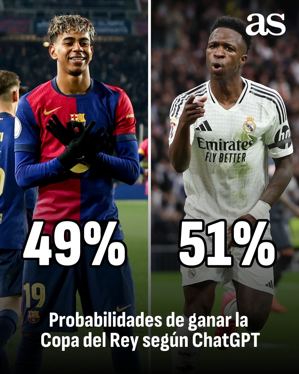 阿斯报晒图ChatGPT预测国王杯夺冠概率:巴萨49%,皇马51%