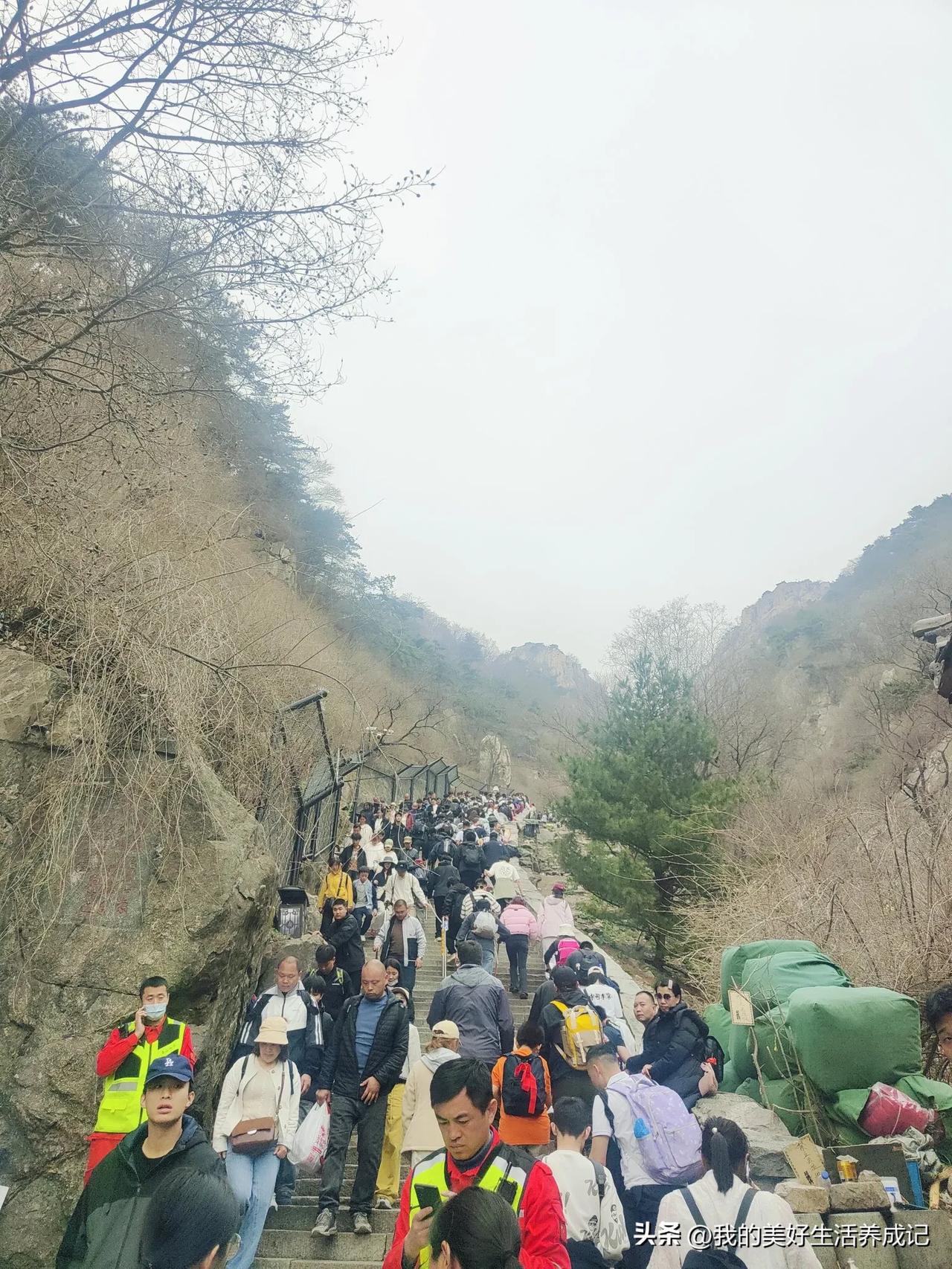 听假期第一天,小小泰山,轻松拿捏。 济南去泰安的路上堵车堵了很长时间,导致到了红门,已经11点钟了。 这次爬行的路线红门到中天门,中天门不行到南天门,南天门步行玉皇顶,天街附近玩一圈。五岳独尊拍照的人太多。 上山时间大概花了6个小时。确实是很累。 下山时间得接近7点了,缆车已经下班。步行至中天门,8点半中天门坐大巴到了天外村,天外村又坐游2号公交直接回红门。 然后开车回济南,到济南11点钟。倒头就睡觉。 完整的一天,很多事情只要去做,其实并不遥远。行则将至。