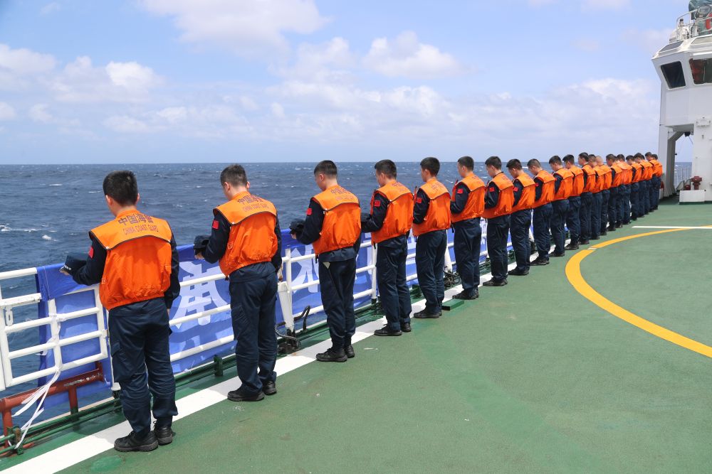 海警执法员们纷纷表示,愿继承先烈遗志,牢记使命,不怕牺牲,把全部热情投入南海常态化巡航任务,坚定维护我国海洋权益、捍卫领土主权完整。