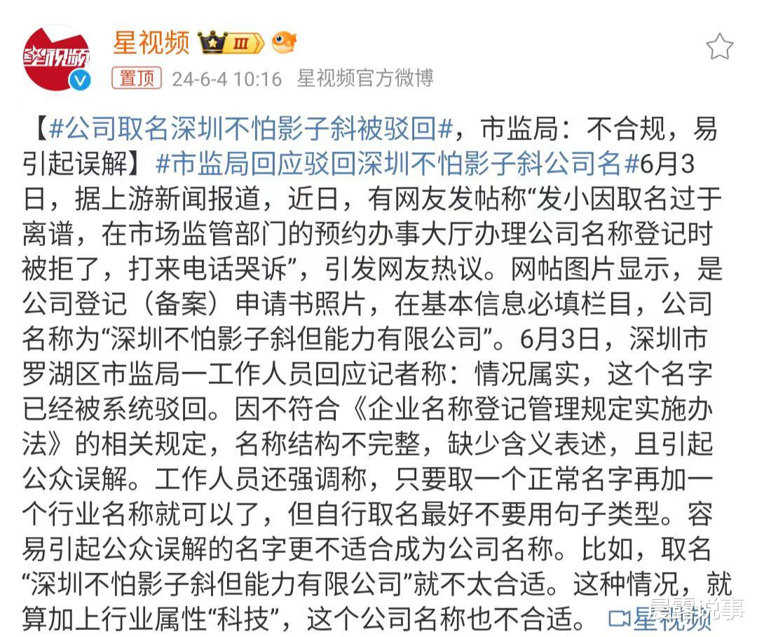 媒体就此问题采访工作人员得到回应是,不符合名称登记管理规定,结构不完整,缺少含义表示,容易引起公众无解。