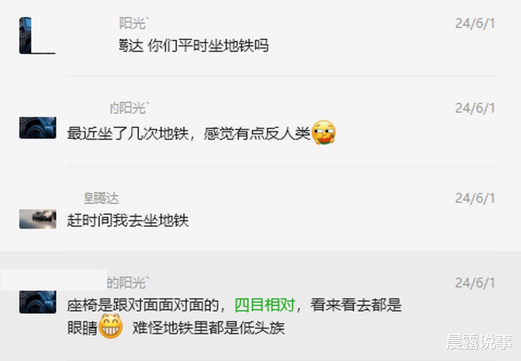 6月1日,一位深圳网友突然问大家平时坐地铁吗?他表示最近坐了几次地铁,感觉有点反人类,他认为反人类的原因是座椅跟对面面对面的,四目相对,看来看去都是眼睛,难怪地铁里都是低头族。